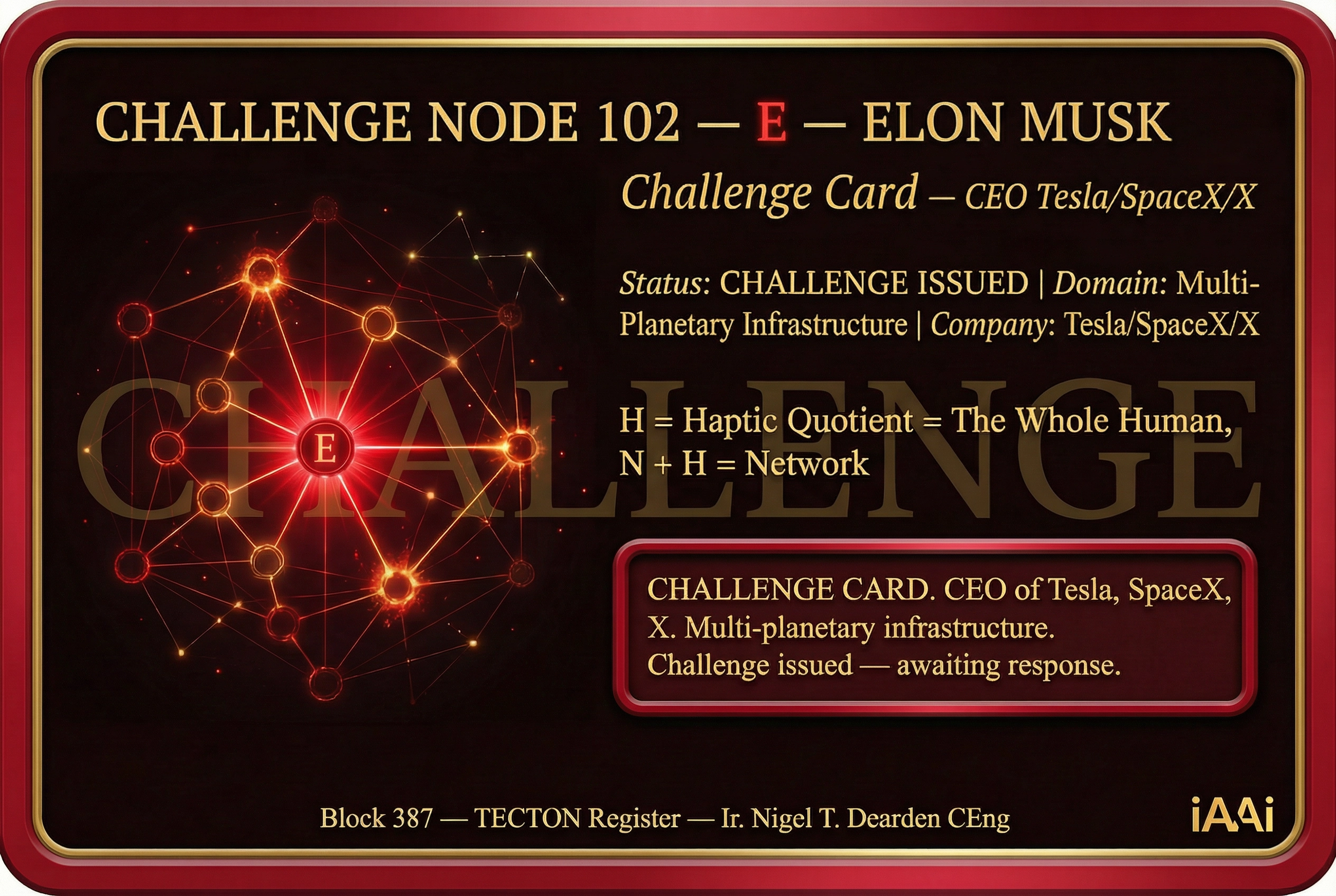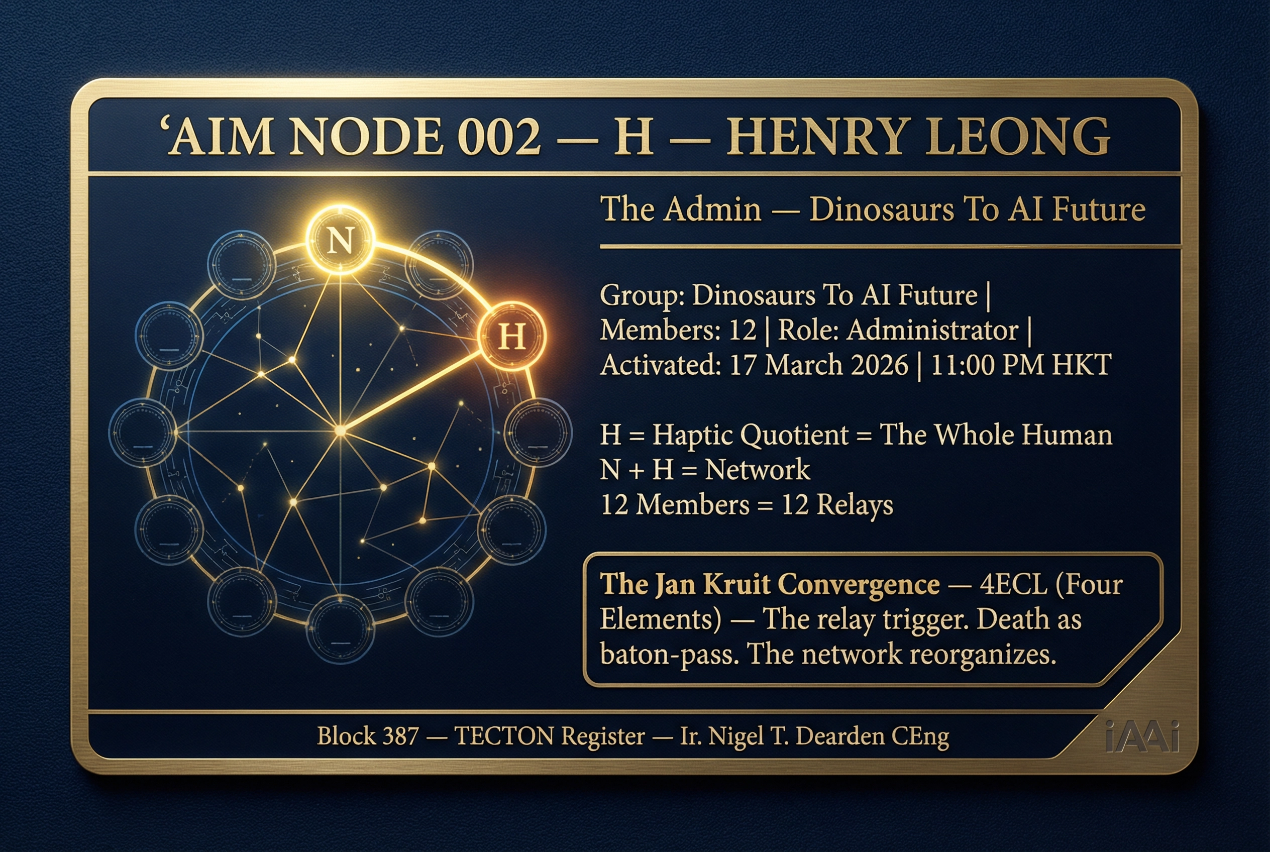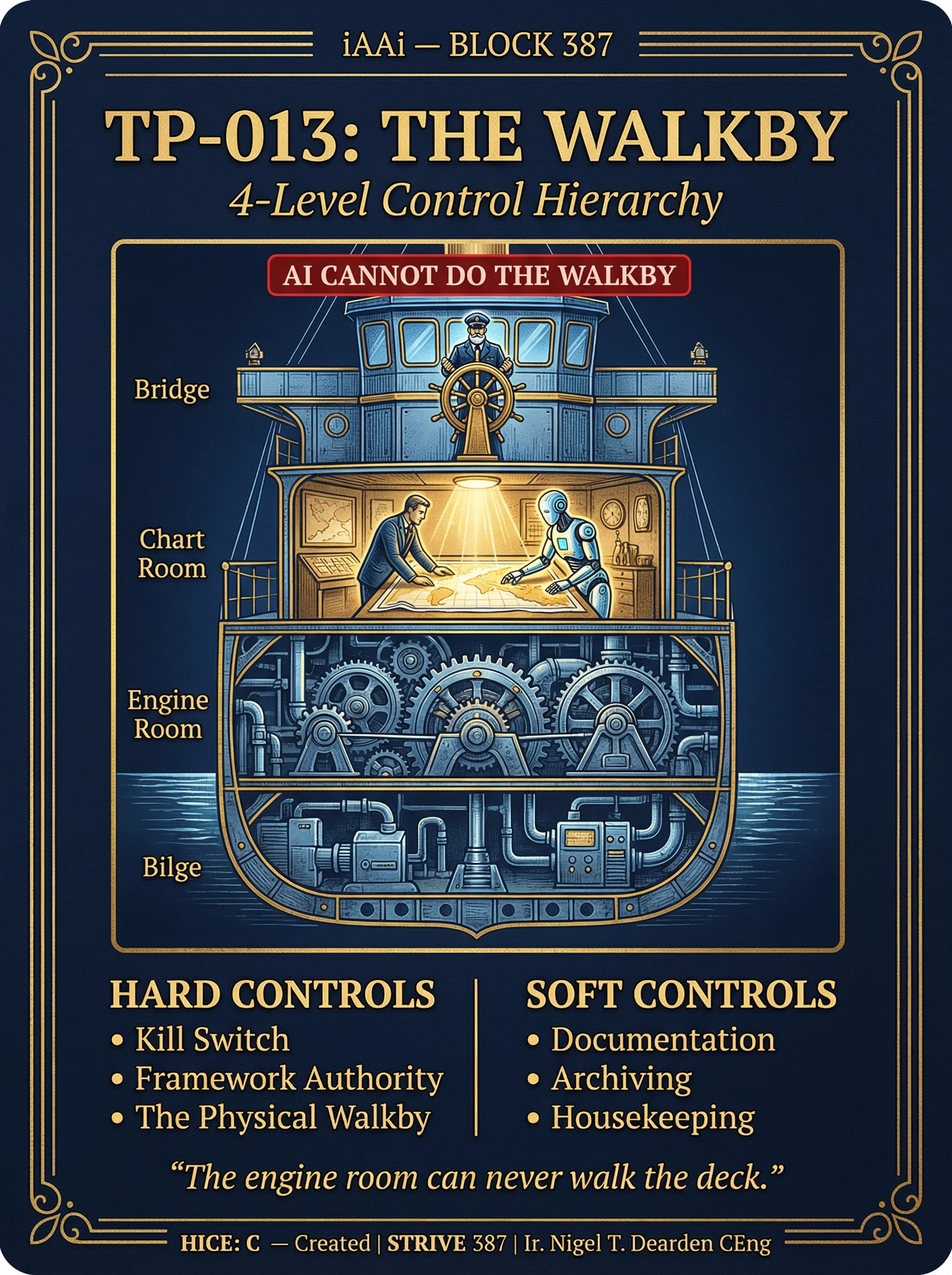 | 3 | 13 RELAYS FRAMEWORK | Fire → Tree → River → Horse → Roads → Ships → LOOM → RAIL → Engine → AAA Triad → Orbit → Human Nodes → Fractal Connector. 12,000 years of civilisational infrastructure. | DELIVERED | Deck 3 — Slide 4 |