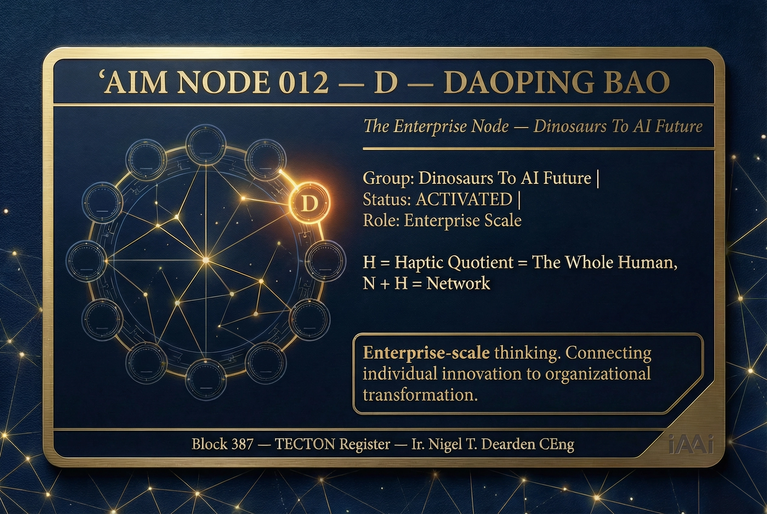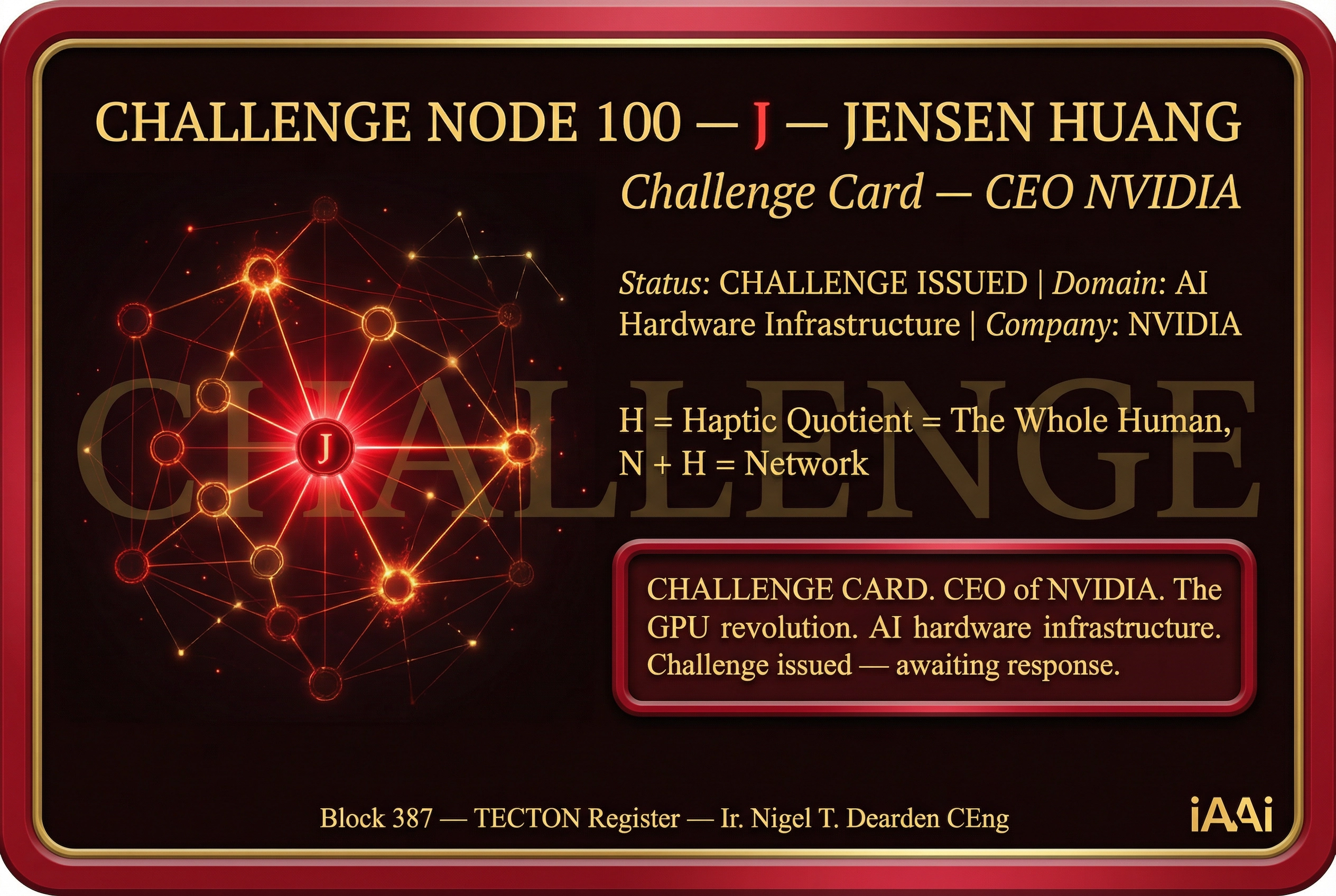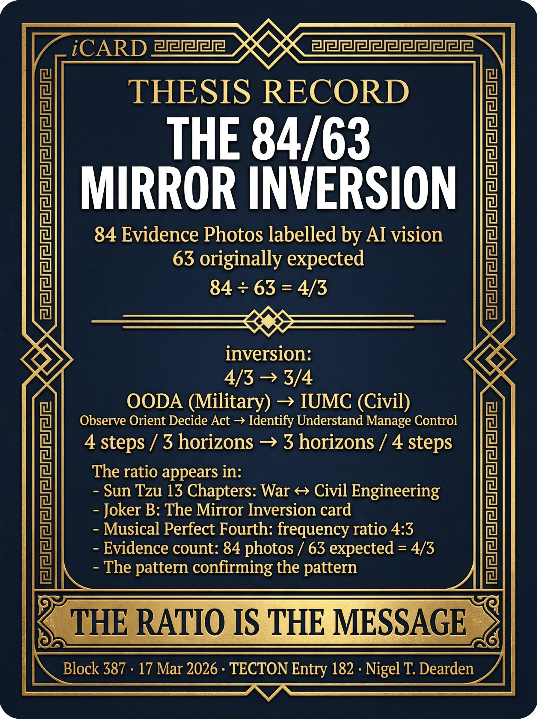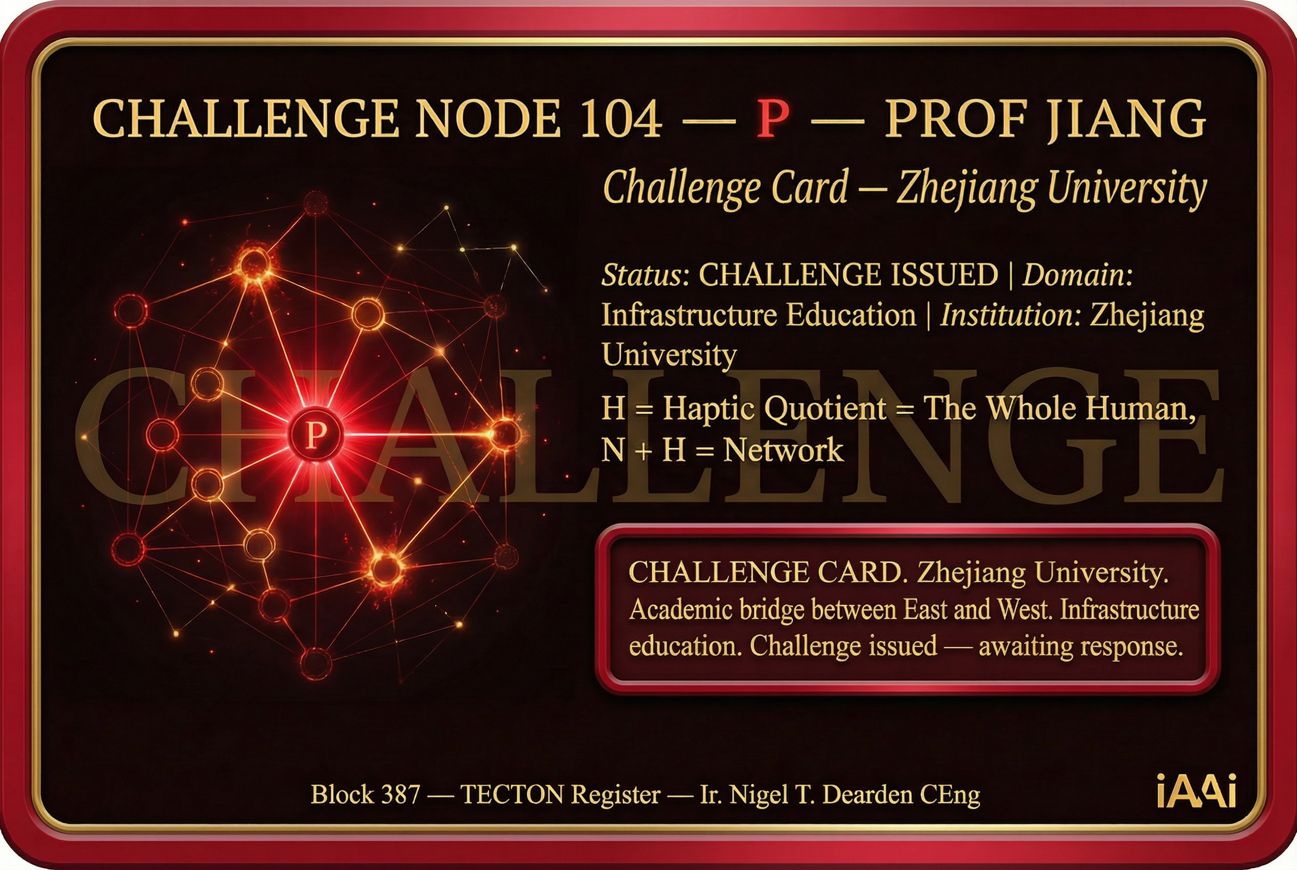 | 3 | 13 RELAYS FRAMEWORK | Fire → Tree → River → Horse → Roads → Ships → LOOM → RAIL → Engine → AAA Triad → Orbit → Human Nodes → Fractal Connector. 12,000 years of civilisational infrastructure. | DELIVERED | Deck 3 — Slide 4 |
