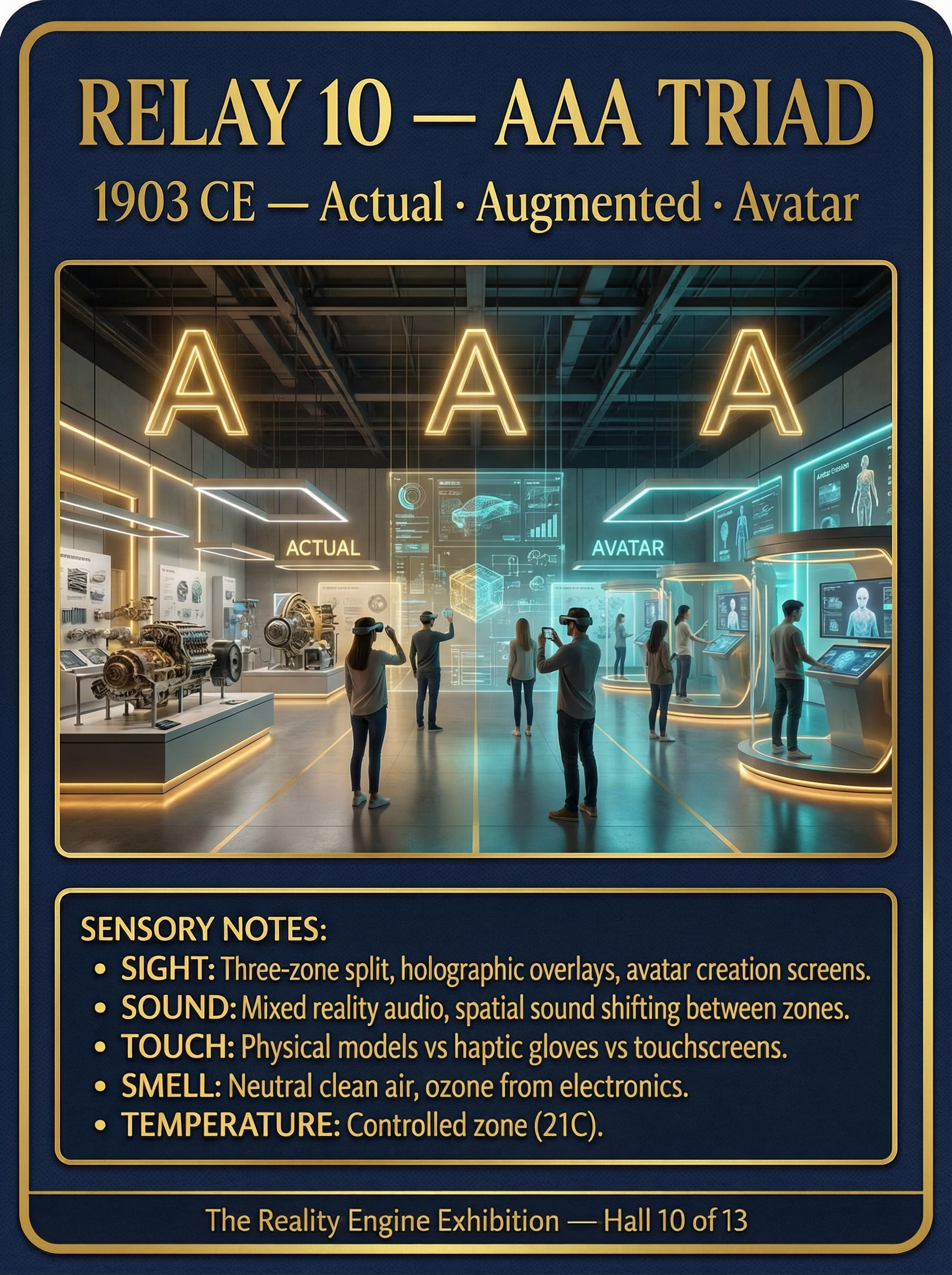 | 9 | RELAY VISION BOARD | What each of the 13 relay halls would look and feel like — sensory design, AR/VR elements, sound, smell, touch. Disney multi-sensory approach. | PENDING | — |